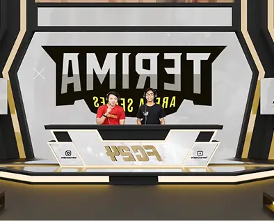 Panggung virtual 3D untuk pengalaman siaran yang imersif dan modern. Cocok untuk turnamen dan acara komunitas gaming.interaktif.